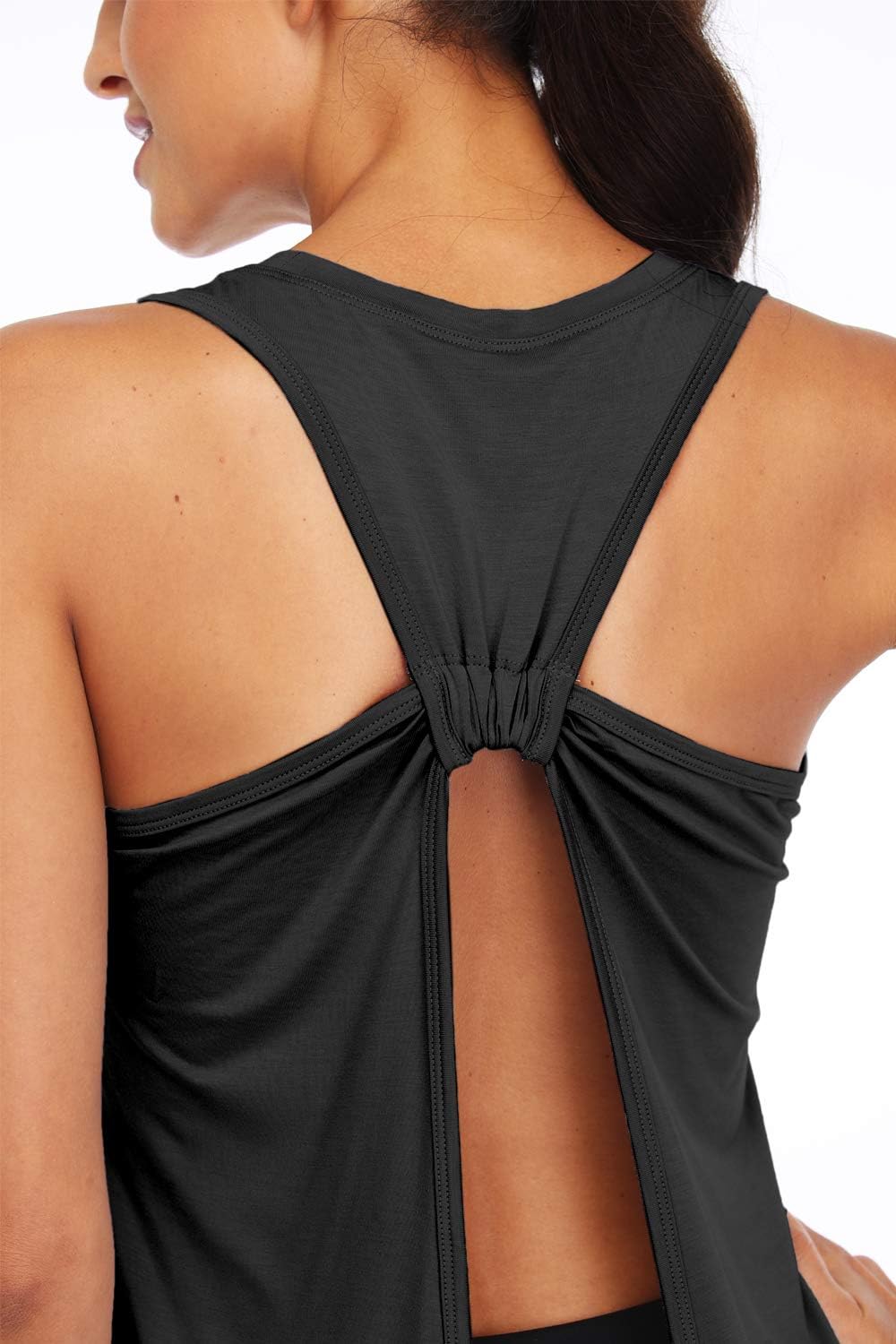 Sanutch Open Back Workout Top Backless Yoga Shirts Tie Back Workout Tank for Women