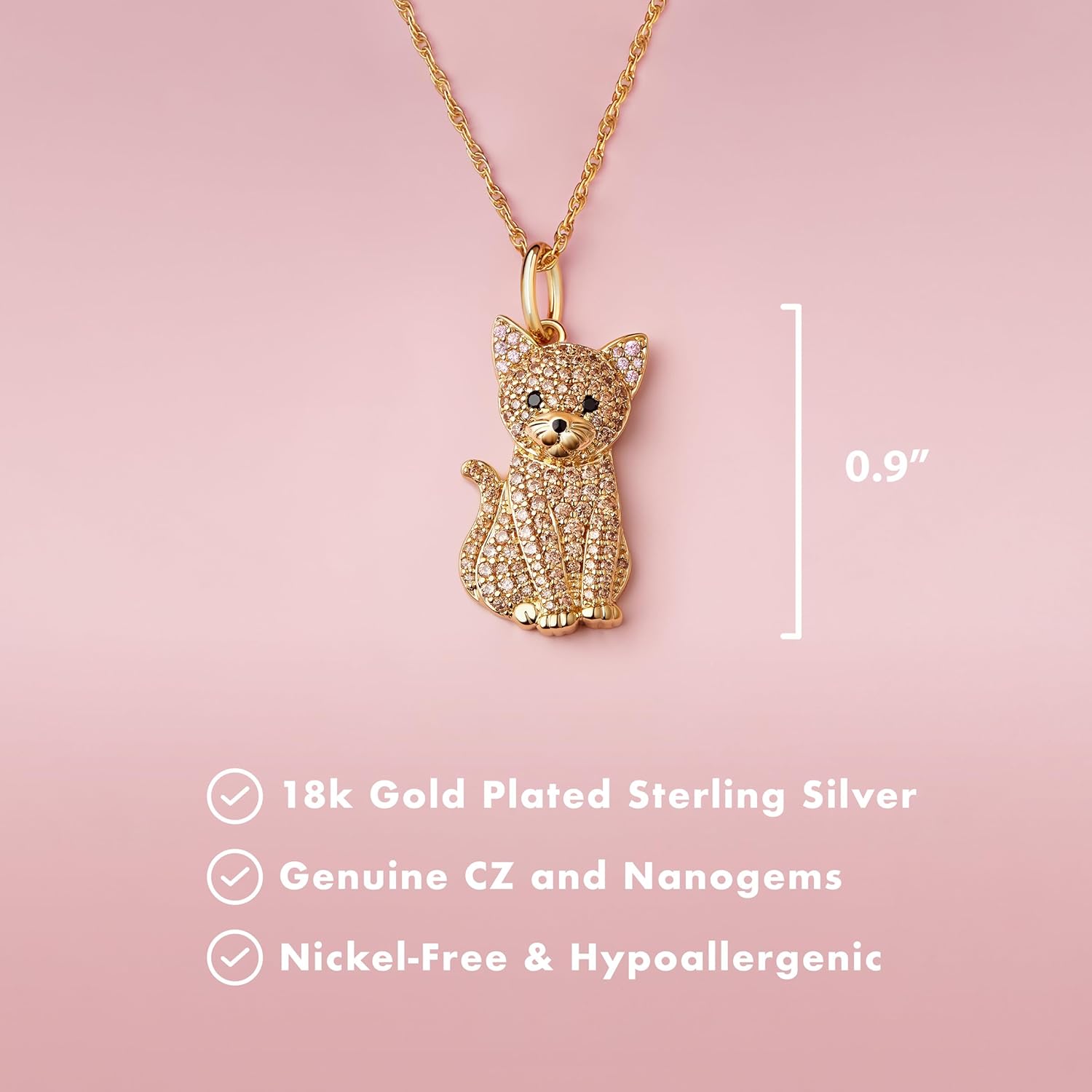 SCAMPER & CO Cat Necklace for Women, Genuine Cubic Zirconia Kitten Pendant Charm, Jewelry Gift for Cat Lovers, Premium Sterling Silver Chain with Secure Claw Clasp, 18 inch with 2 inch extender
