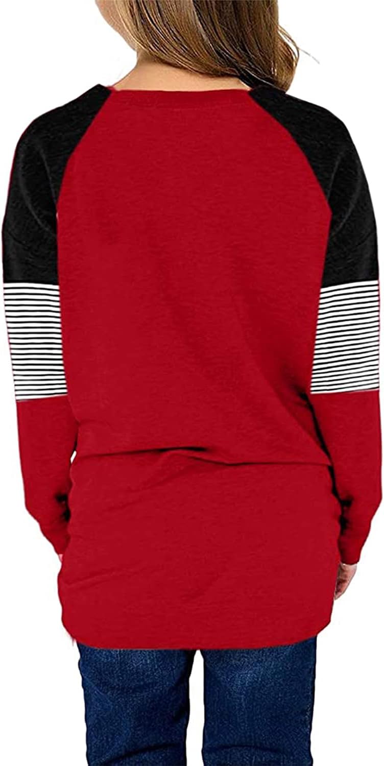 SELINK Girl’s Casual Big Kids Long Sleeve Striped Color Block Casual Tees with Pockets