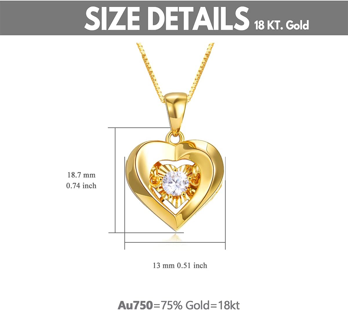 SISGEM 18k Gold Heart Pendant and 18kt Gold Box Chain Necklace, Fine Jewelry for Wife, Present for Mother, Gifts for Her,18″