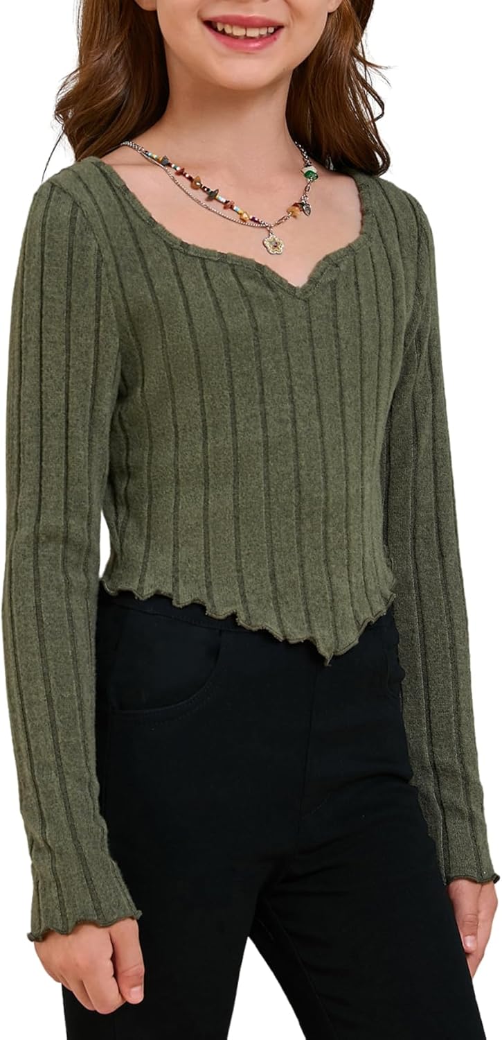 SOLY HUX Girl’s Long Sleeve Cute Crop Tops Sweetheart Neck Asymmetrical Tight T Shirts Fitted Tees