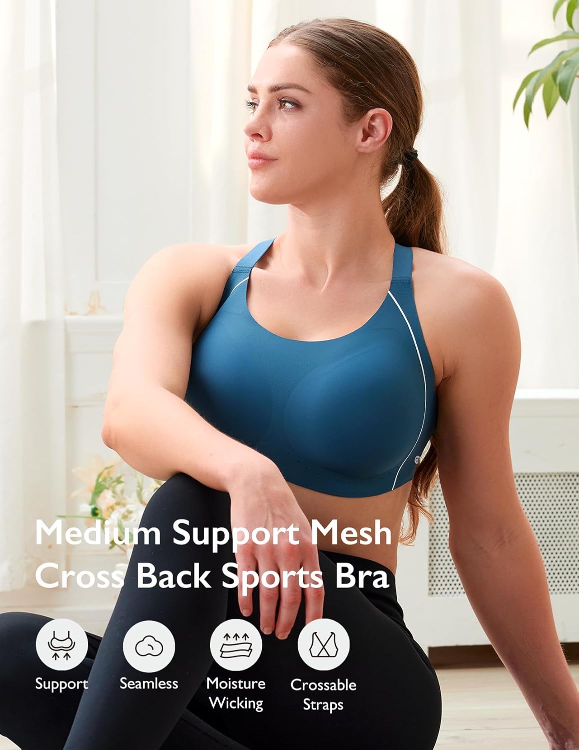 Sports Bras for Women, Criss-Cross Back Padded Workout Bras for Yoga Gym Workout Fitness