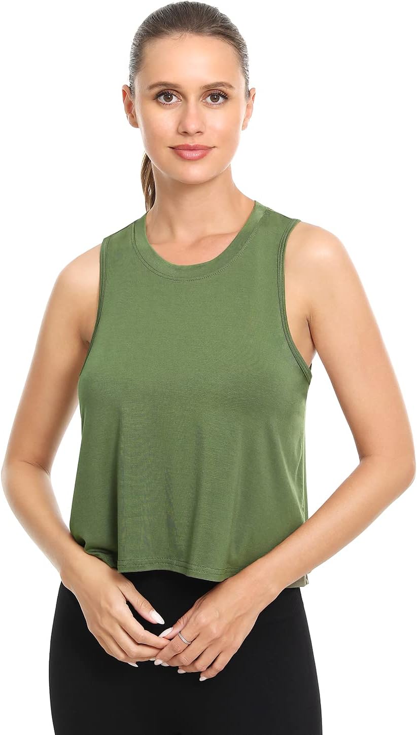 Flowy basic crop tank tops for women are made of 95% modal and 5% spandex.have good elasticity and breathability,It can be used for undershirt Or wear it outside.