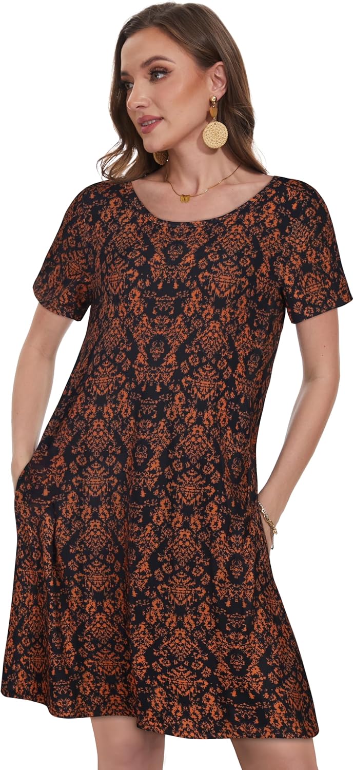 Summer Dresses for Women Casual Tshirt Short Sleeve Floral Sundress Beach Cover Ups with Pockets