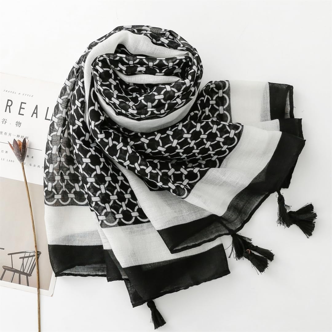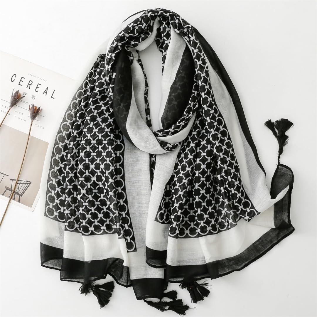 Travel Boho Scarf for Women Casual Lightweight Pashmina Scarves Fashion Multicolor Shawl Wraps with Fringed Beads