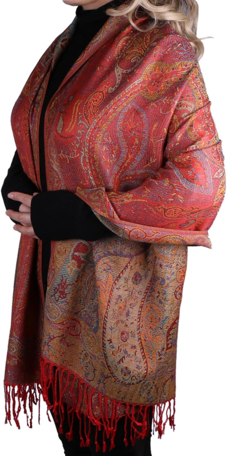 TZ Promise Women Paisley Pashmina Shawl Wrap Colorful Pattern Embroidered Reversible Winter Scarf