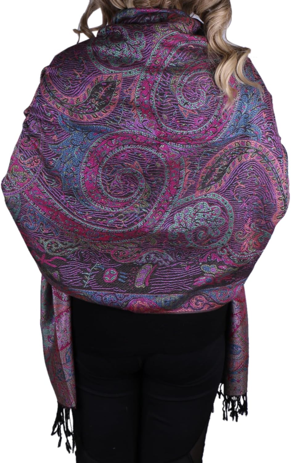 TZ Promise Women Paisley Pashmina Shawl Wrap Colorful Pattern Embroidered Reversible Winter Scarf