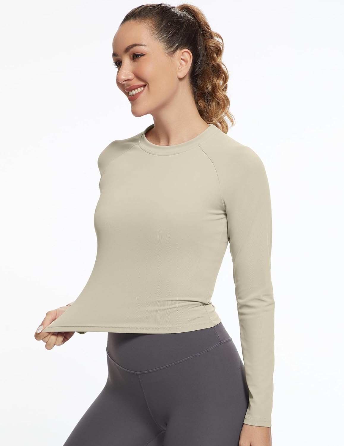 Womens Long Sleeve Crop Workout Tops Yoga Cropped Top Gym Shirts Athletic Clothes Slim Fit