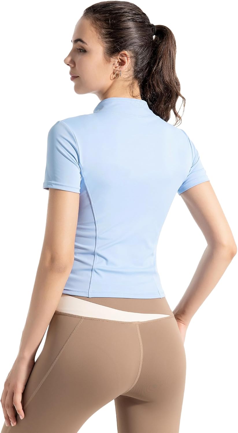 Women’s Short Sleeve Slim Fit Athletic Jacket Full Zip Workout Tops Solid Color Fitness Clothing